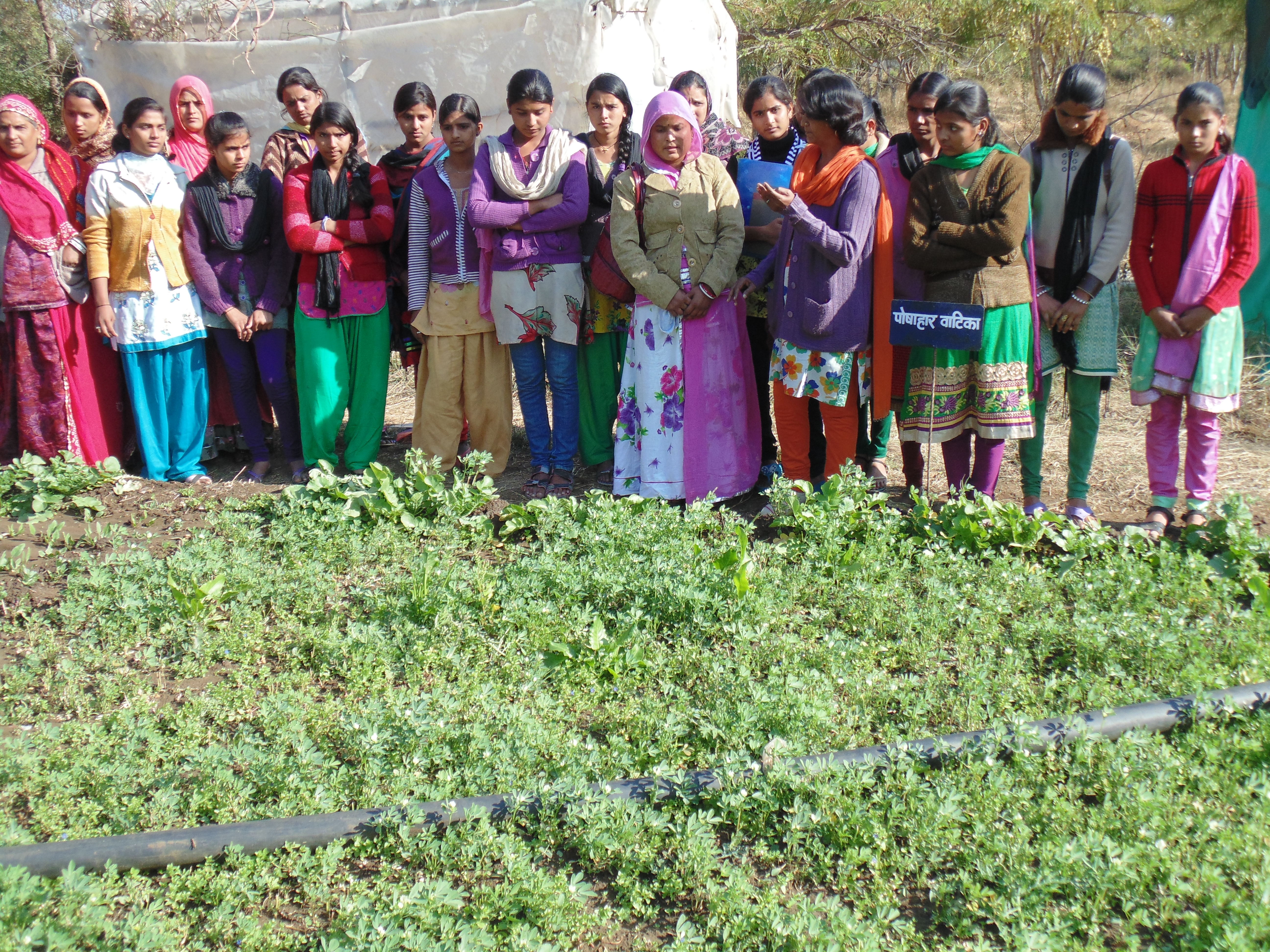 A model of Nutrition garden is developed at KVK farm to encourage farm women to lay out nutrition garden at their farm or back yard of home to use various vegetables produced in their daily diet to improve nutrition level.