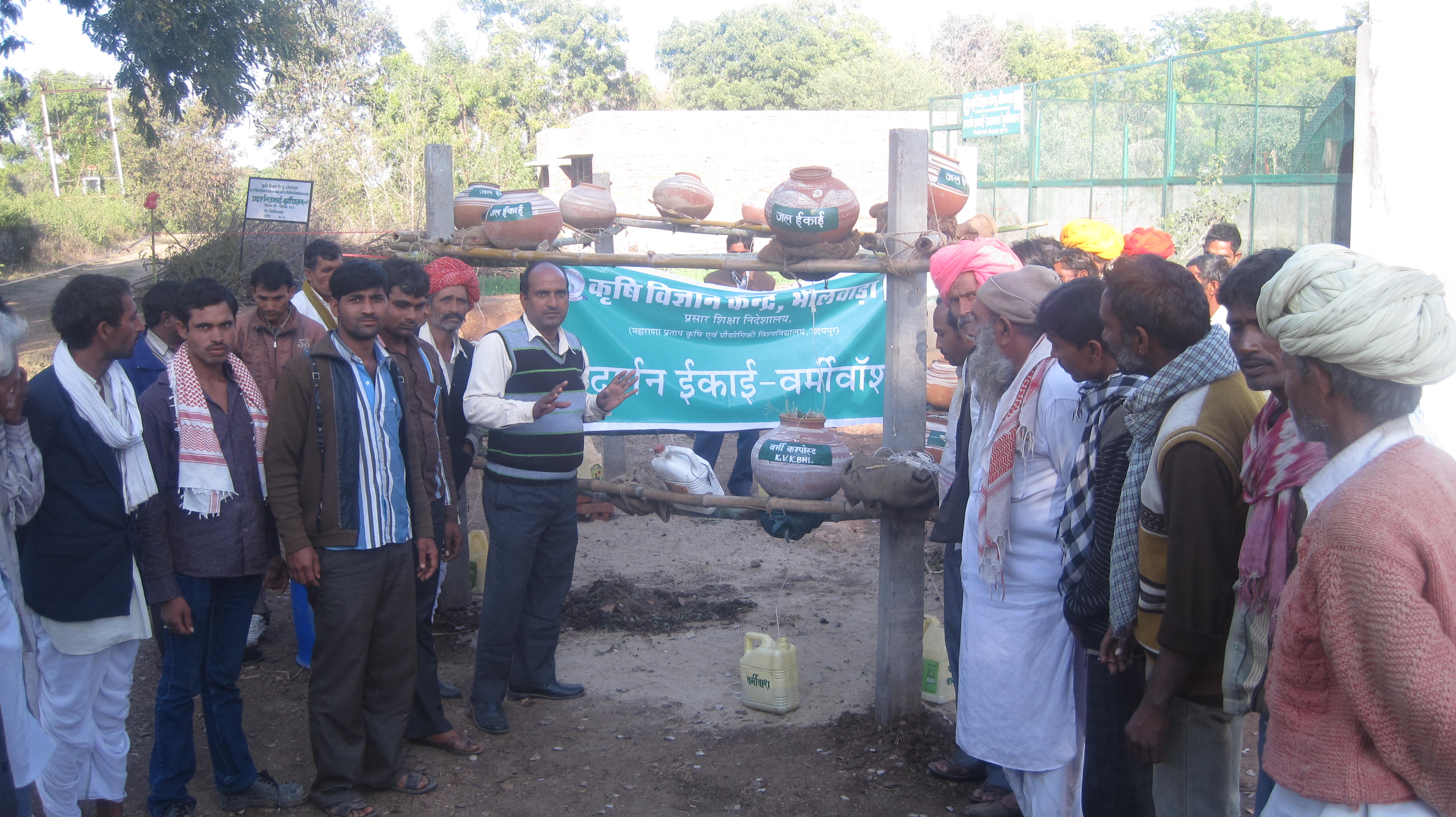 Vermi compost unit was established with financial support of ICAR. This demonstrates the conversion of farm waste into enriched compost. Two different species of worms are reared so that the culture can be made available to farmers. 1. Eisenia foetida, 2. Eudrillus uginae